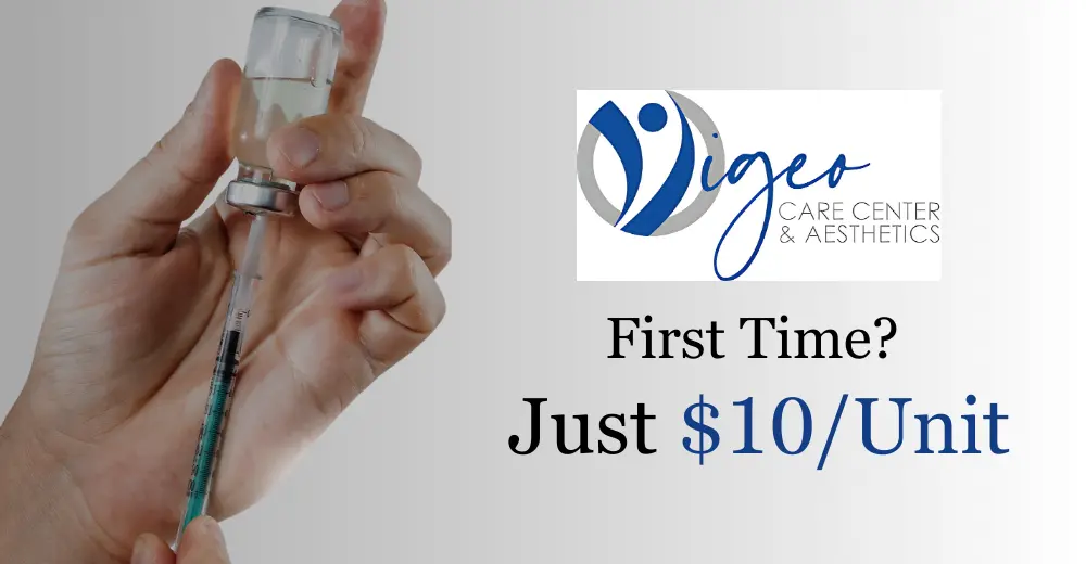 New to Vigeo Care Center & Aesthetics? Now is the perfect time to get started! We’re offering $10 per unit neurotoxin exclusively for new patients.