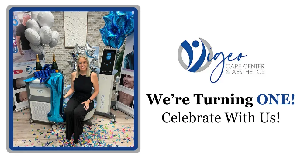 Join us as we celebrate Vigeo Care Center & Aesthetics’ 1-Year Anniversary! It’s been an incredible journey serving the Algonquin community with compassionate care, confidence-boosting treatments, and a dedication to helping you look and feel your best — and we couldn’t have done it without YOU! 💛